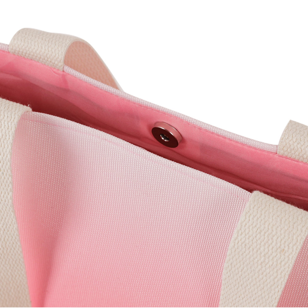 ¡Lleva tus cosas con estilo! Esta totebag con diseño degradado y amplias asas es perfecta para viajes, días de playa o cualquier plan lleno de diversión. Su diseño pinky y funcional combina espacio y comodidad con un toque único increíble.