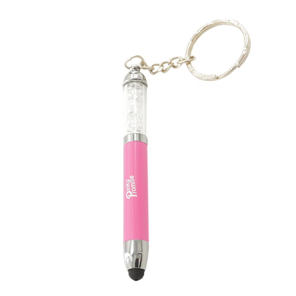 ¡El accesorio más cute que necesitas! Este llavero minibolígrafo es práctico, chic y lleva el logo grabado de Pinky Promise, perfecto para llevar el estilo del programa contigo a donde vayas. ¡Ideal para anotar tus ideas con mucho glam!