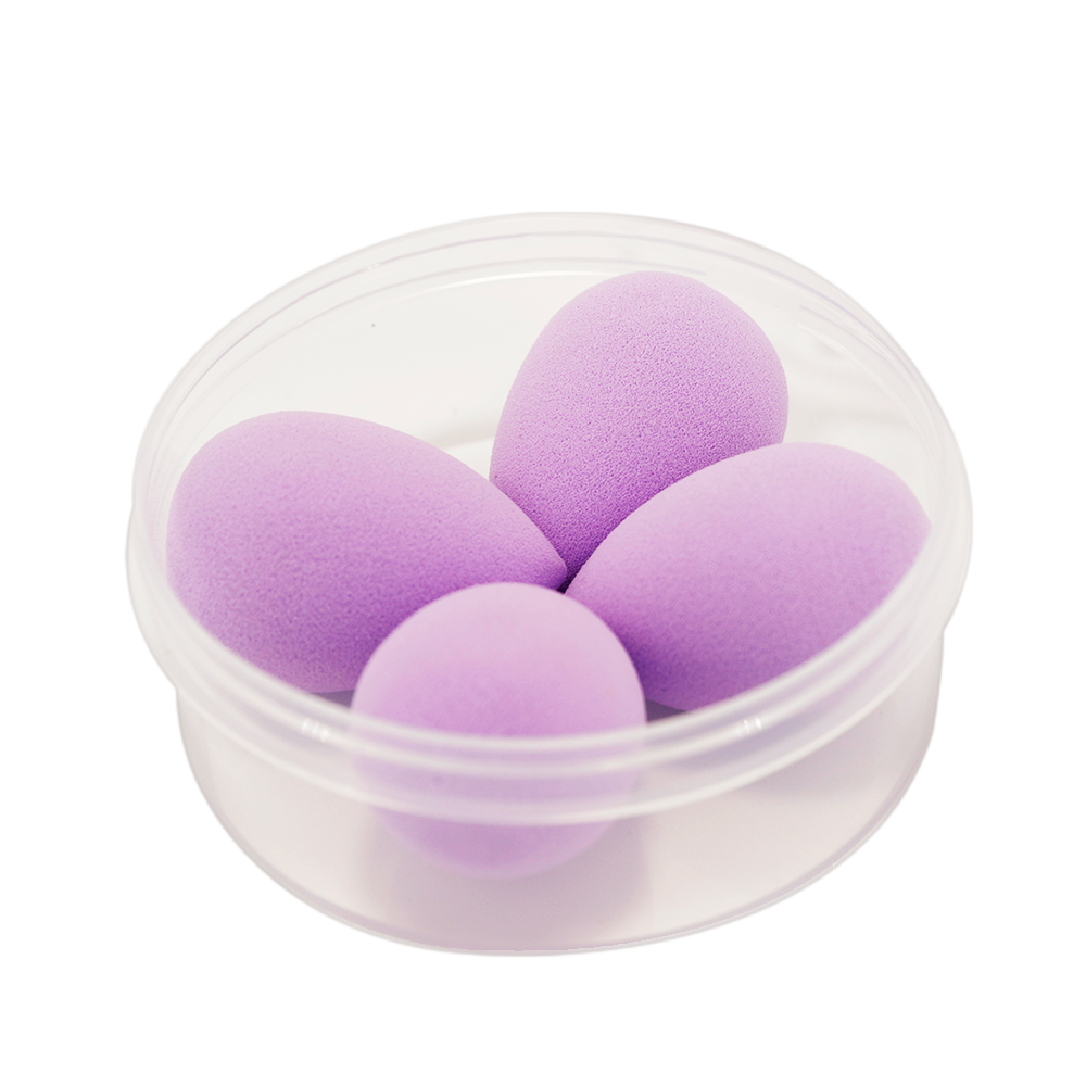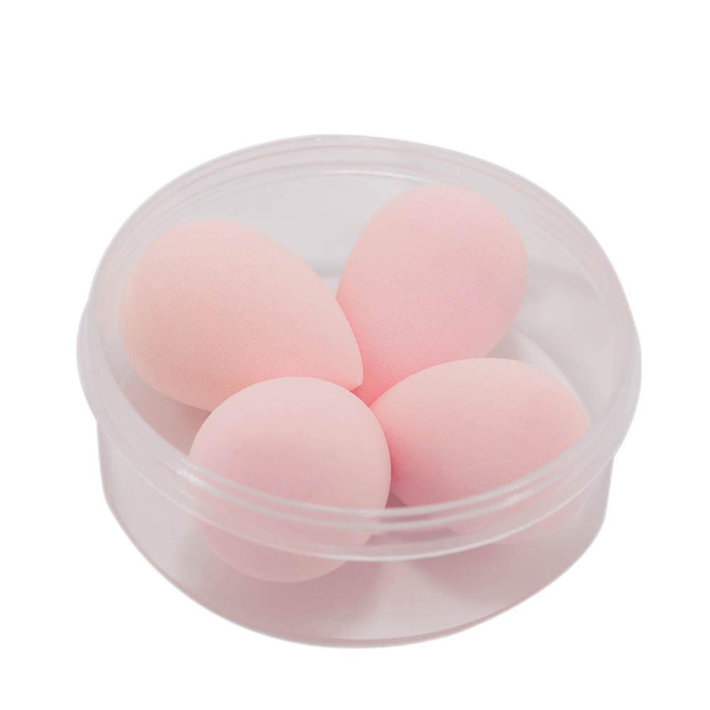 Set de 4 esponjas para maquillaje de poliuretano hidrofilico, incluye estuche de plástico